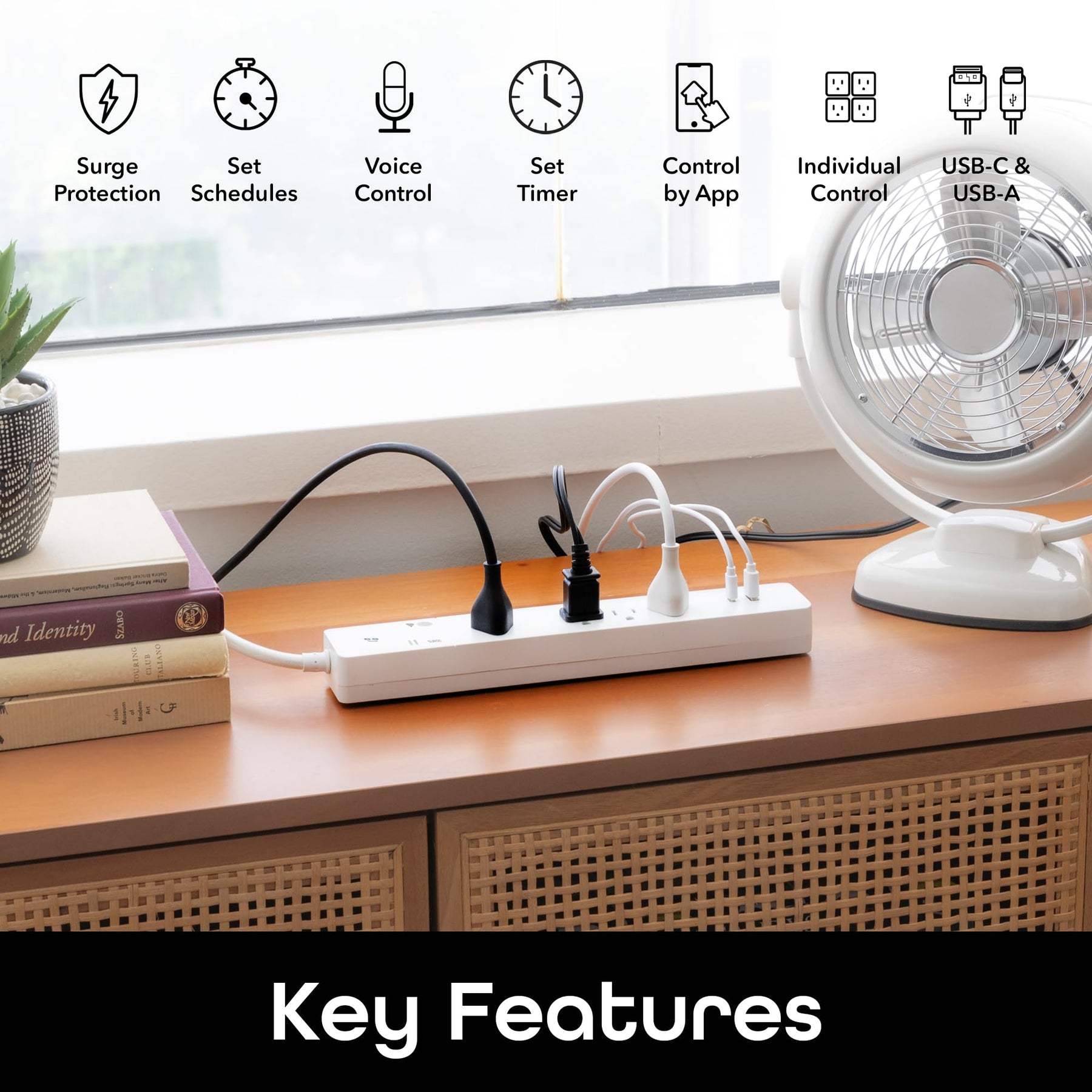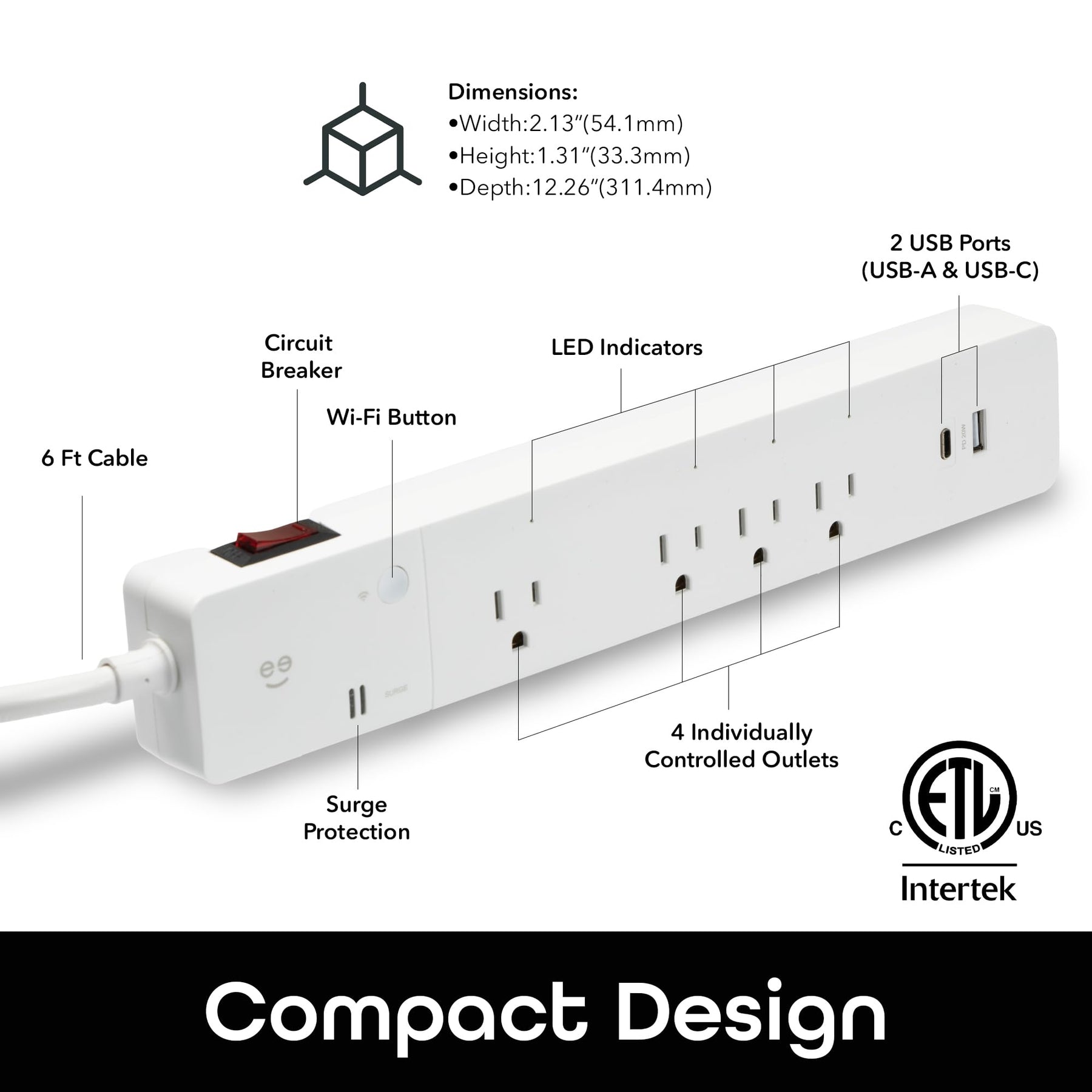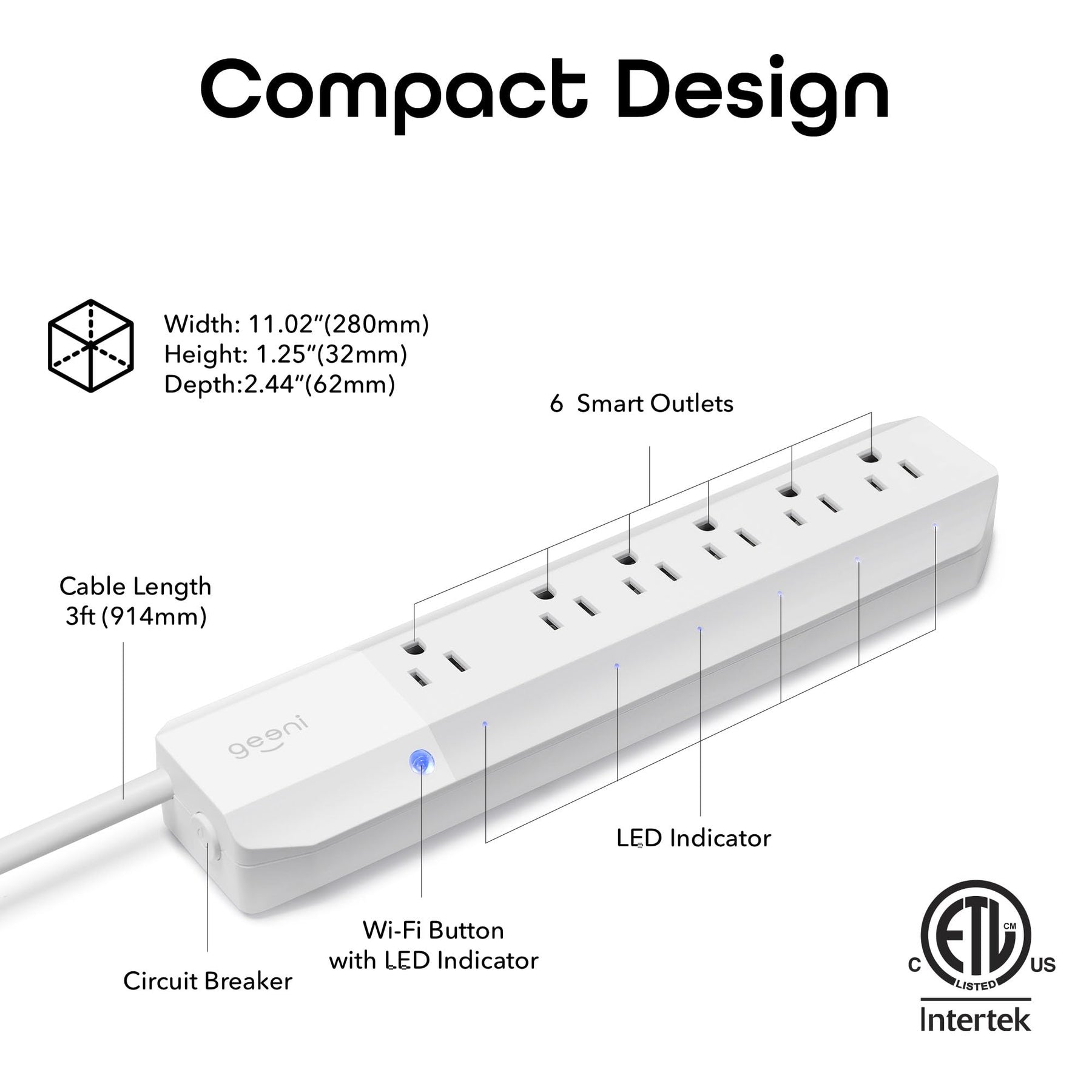 Geeni Smart Surge Protector 6-Outlet Power Strip – Wi-Fi Enabled with Voice Control (Alexa, Google Assistant), Surge Protection, 3ft Extension Cord, Remote Access - DOKUTRONIX
