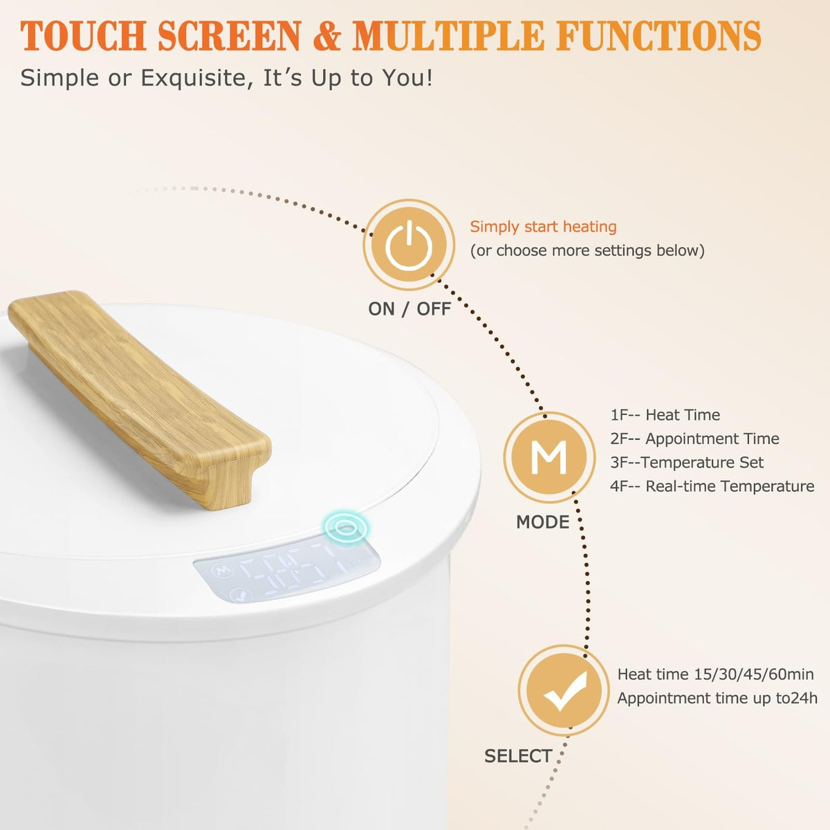 Smart Timer Towel Warmer- With a built-in timer, choose heating duration of 30, 45, 60 or 90 minutes.The towel warmer bucket is set in up to 24-hour delay timer. Always have warm towels ready by using the built-in timer to heat your towels. Whether you're taking a quick shower or long, relaxing soak, the warmer suits all your need, use it with more confidence!
