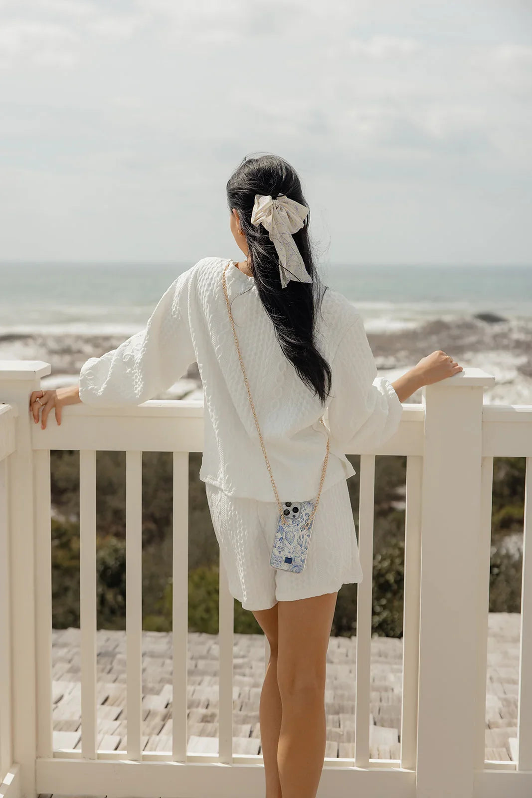 Pair this case with the coordinating Coastal Check wrist lanyard and Apple watch band!