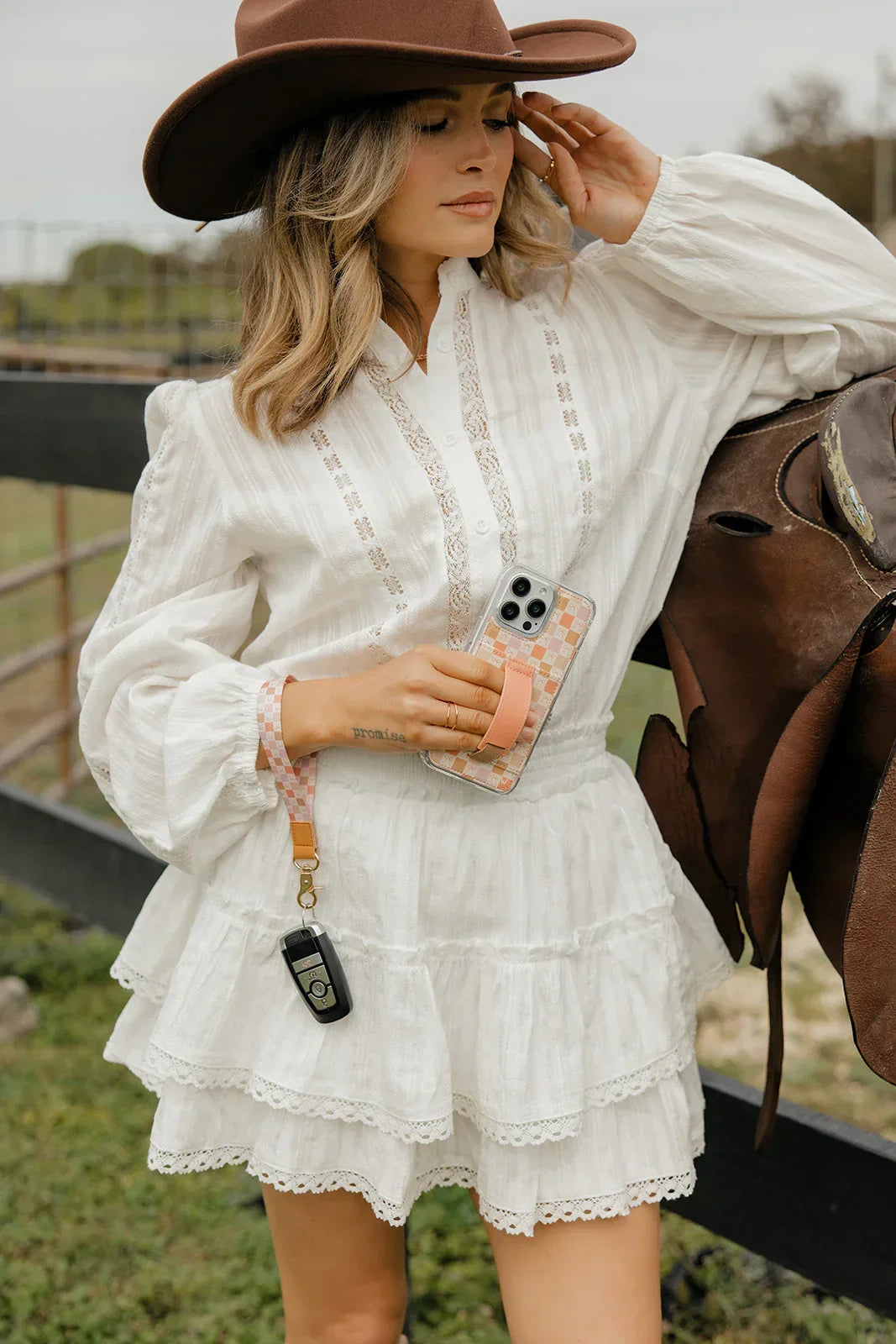Hang tight to your possessions with the Golden Grace wrist lanyard. It is perfect to keep track of your keys and other accessories. Complete the look with the coordinating Golden Grace case and Apple watch band.