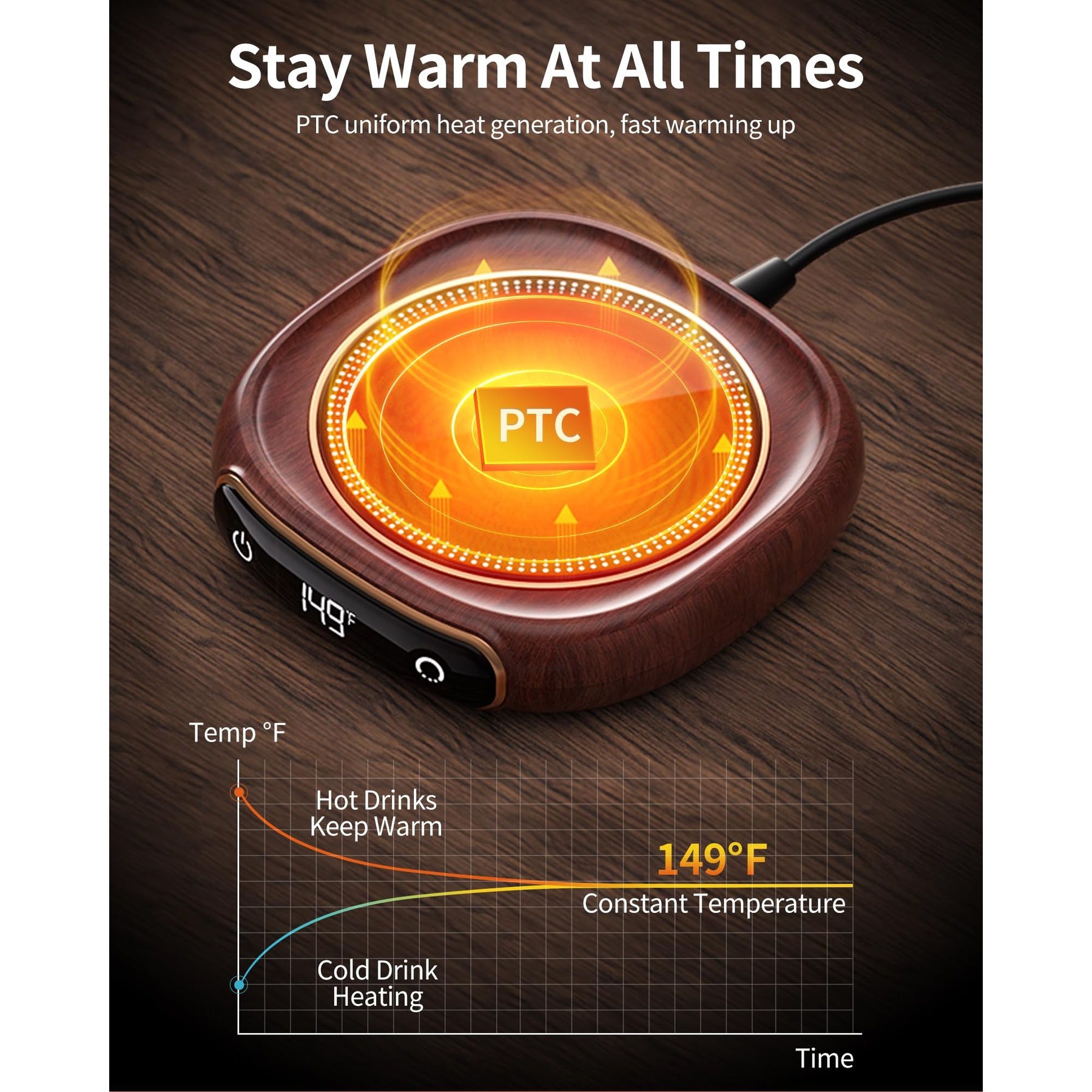 【CONSTANT 149°F Temperature】 Our Coffee Mug Warmer ensures that your beverages stay at a consistent 149°F, providing a perfectly warm sip every time. Whether you're keeping your coffee hot or warming up a cold drink, this mug warmer maintains your desired temperature throughout. Tip: For even faster warming and better heat retention, use the lid to cover your cup.