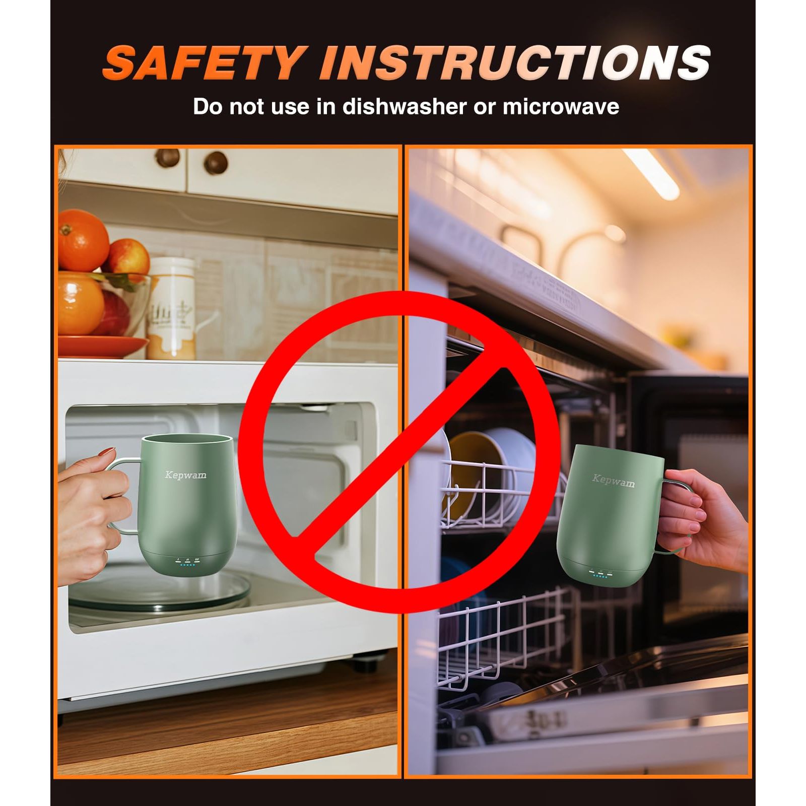Note: Hand wash only. Do not place in dishwasher or microwave, as this may damage internal wiring, impair the heating function, cause safety risks (such as melting or electrical hazards), and reduce the product’s lifespan