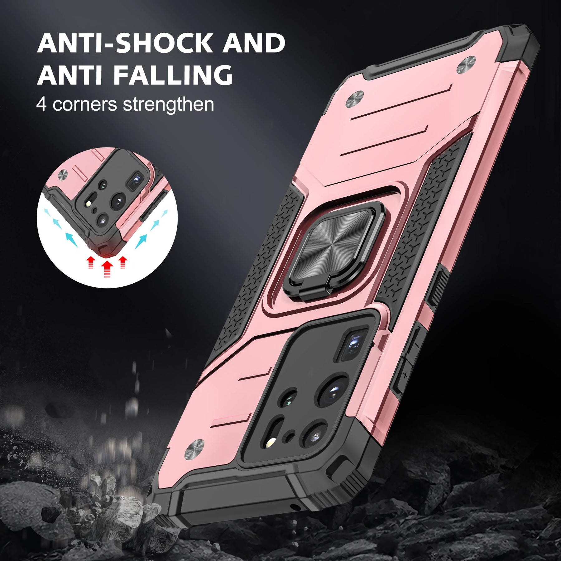 Introducing the Anqrp ArmorCase, a stylish and durable phone case designed specifically for the Samsung S20 Ultra. This case features a stunning rose gold color that will elevate the look of your phone and make it stand out from the crowd.