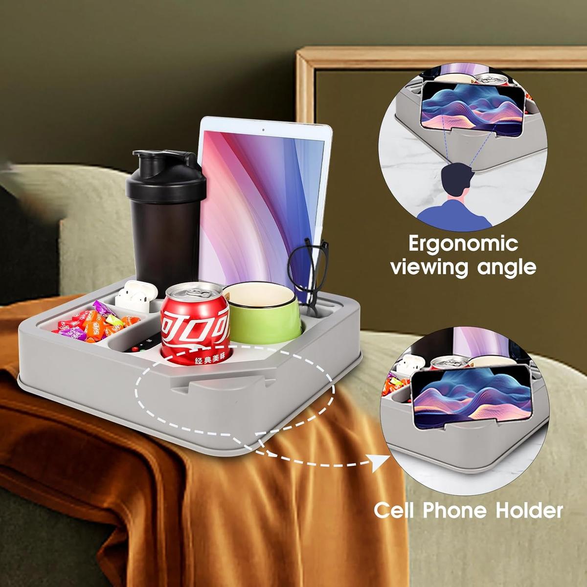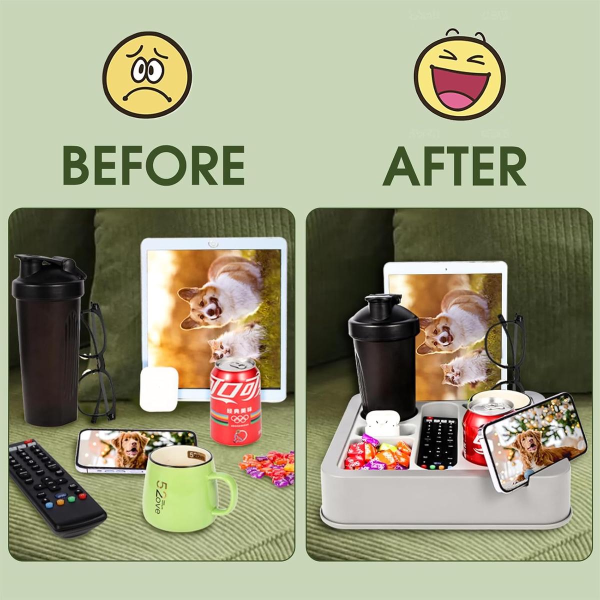 The Couch Caddy Tray features multiple compartments to hold your drink, phone, snacks, and more. The large main compartment is perfect for your drink of choice, while the smaller compartments are great for storing remotes, phones, and even a book or magazine. No more reaching over or getting up from your comfortable spot on the couch – everything you need is right at your fingertips.