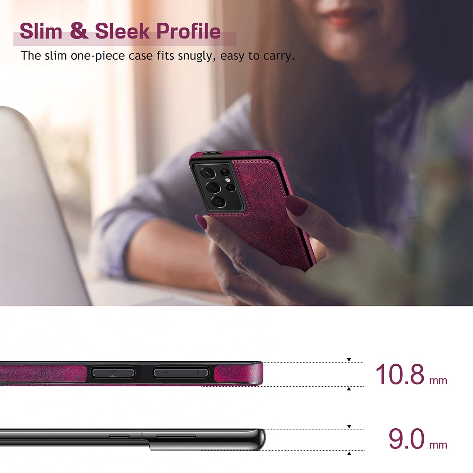 The slim and lightweight design of this case adds minimal bulk to your phone, making it easy to carry in your pocket or bag. The leather grip on the back provides a comfortable and secure hold, reducing the chances of accidentally dropping your phone.