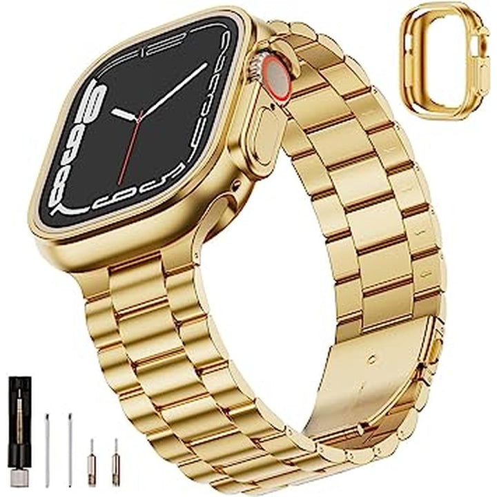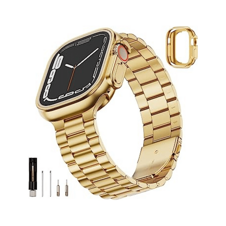 Upgrade your Apple Watch with the Gold Luxe iWatch Band & Case - Premium Steel Edition. Made with high-quality stainless steel, this band and case combo will add a touch of elegance and sophistication to your wrist.