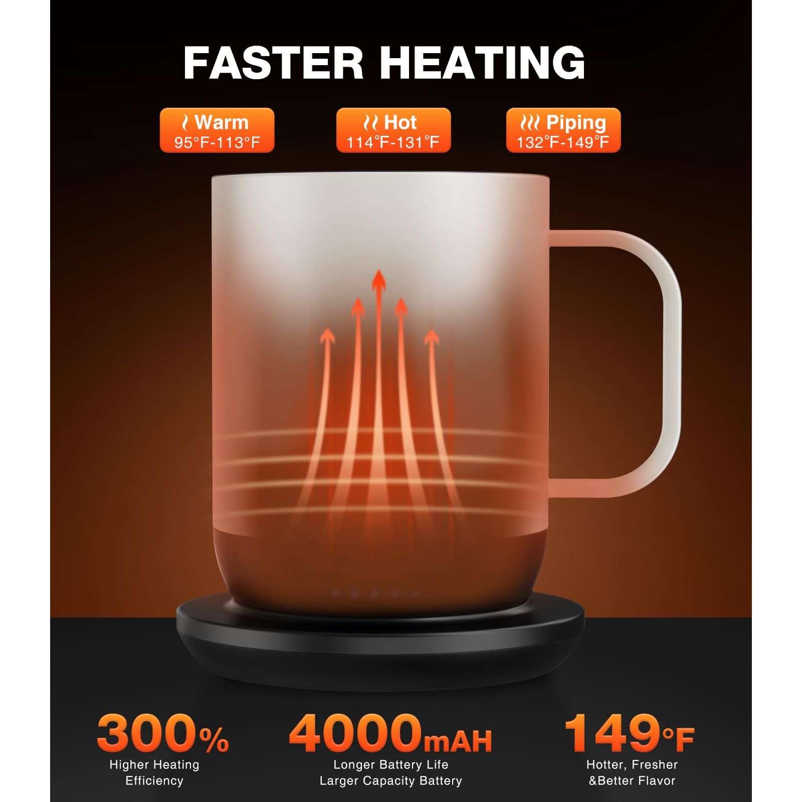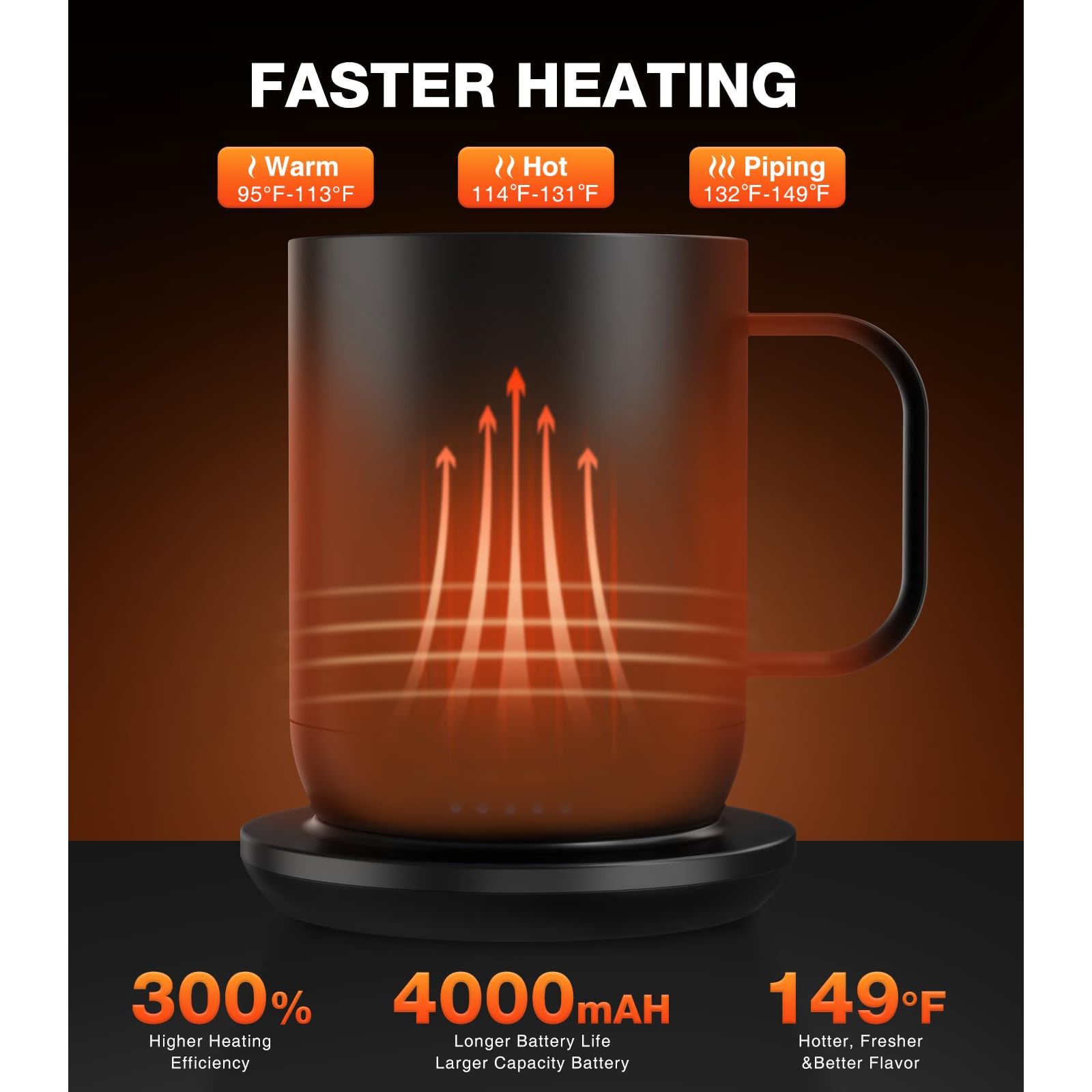 Extreme Battery Life - Kepwam coffee mug uses premium batteries to keep your drink hot for over 180 minutes on a full charge—and even longer with the lid on. For all-day warmth, simply place the mug on the included rechargeable coaster for continuous heating