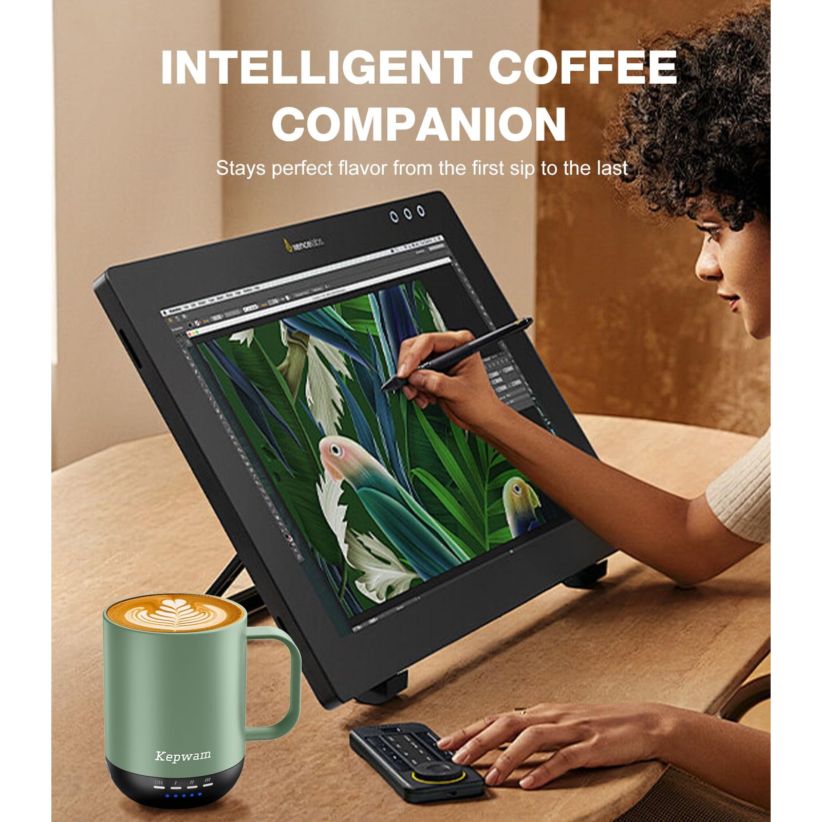 Exquisite and Durable Quality - Kepwam smart coffee mug features a premium smooth ceramic coating and a durable stainless steel interior. Double-wall vacuum insulation effectively retains heat, ensuring excellent thermal performance. The ergonomically designed handle provides a comfortable grip, and the mug is BPA-free for safe use