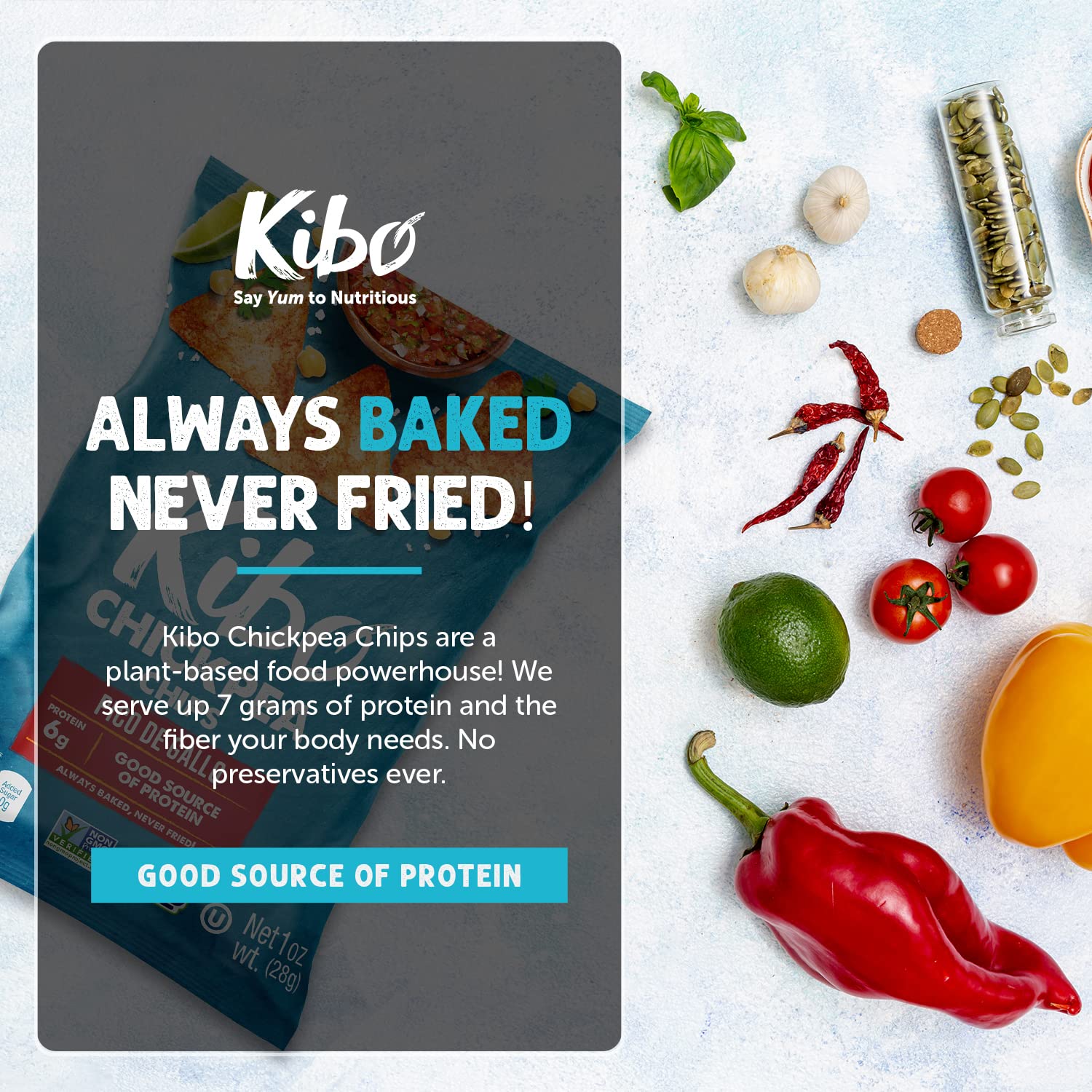 Whether you’re at home, the office, or on-the-go, Kibopack High-Protein Chickpea Chips are the ultimate snack solution. Elevate your snacking experience with a tasty treat that aligns with your healthy lifestyle. Grab a bag today and crunch your way to a healthier you!