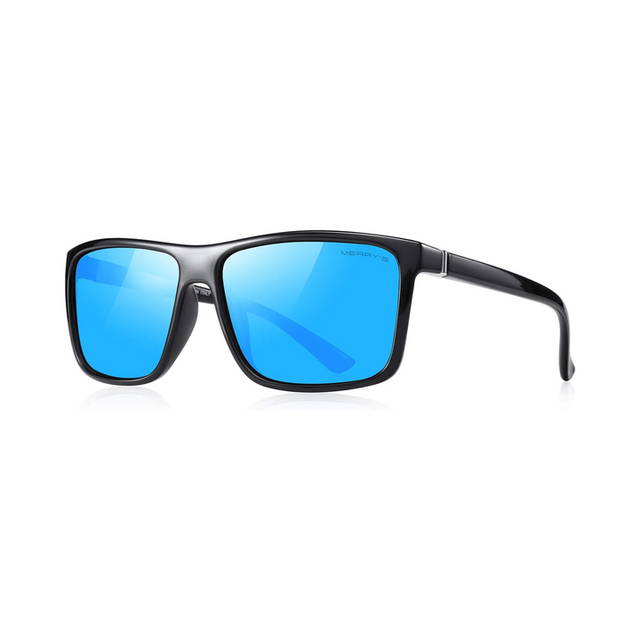 Elevate your performance and style with MERRY'S Polarized Sport Shades in the black with blue mirror design. These sunglasses are perfect for any outdoor activity, whether it be running, cycling, or playing sports. The polarized lenses provide superior glare reduction and 100% UV protection, making them ideal for sunny days.