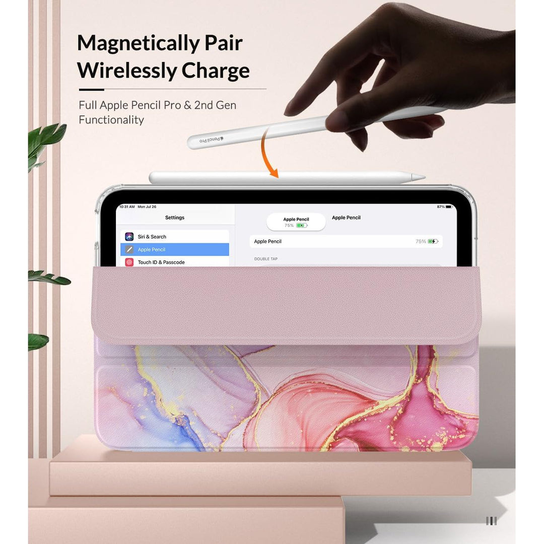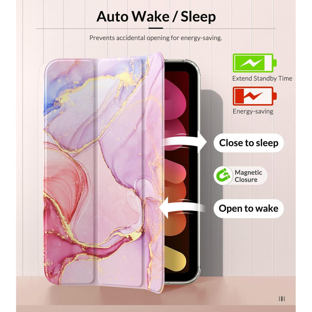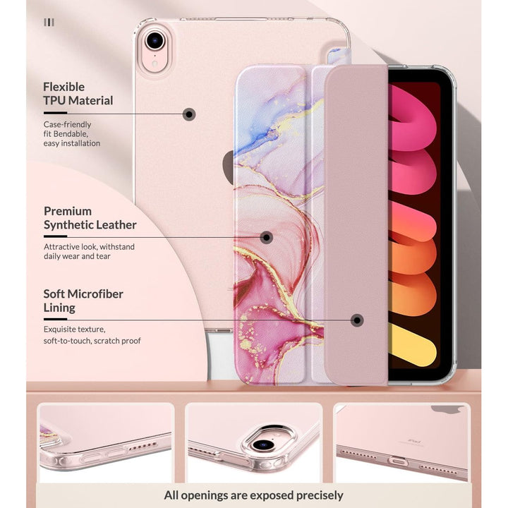 Designed specifically for the iPad Mini 7th Generation, the MoKo Light Pink Gold Marble Case is not only a protective accessory but also a stylish statement piece. Transform your tablet experience and showcase your personal style with this chic, functional case.