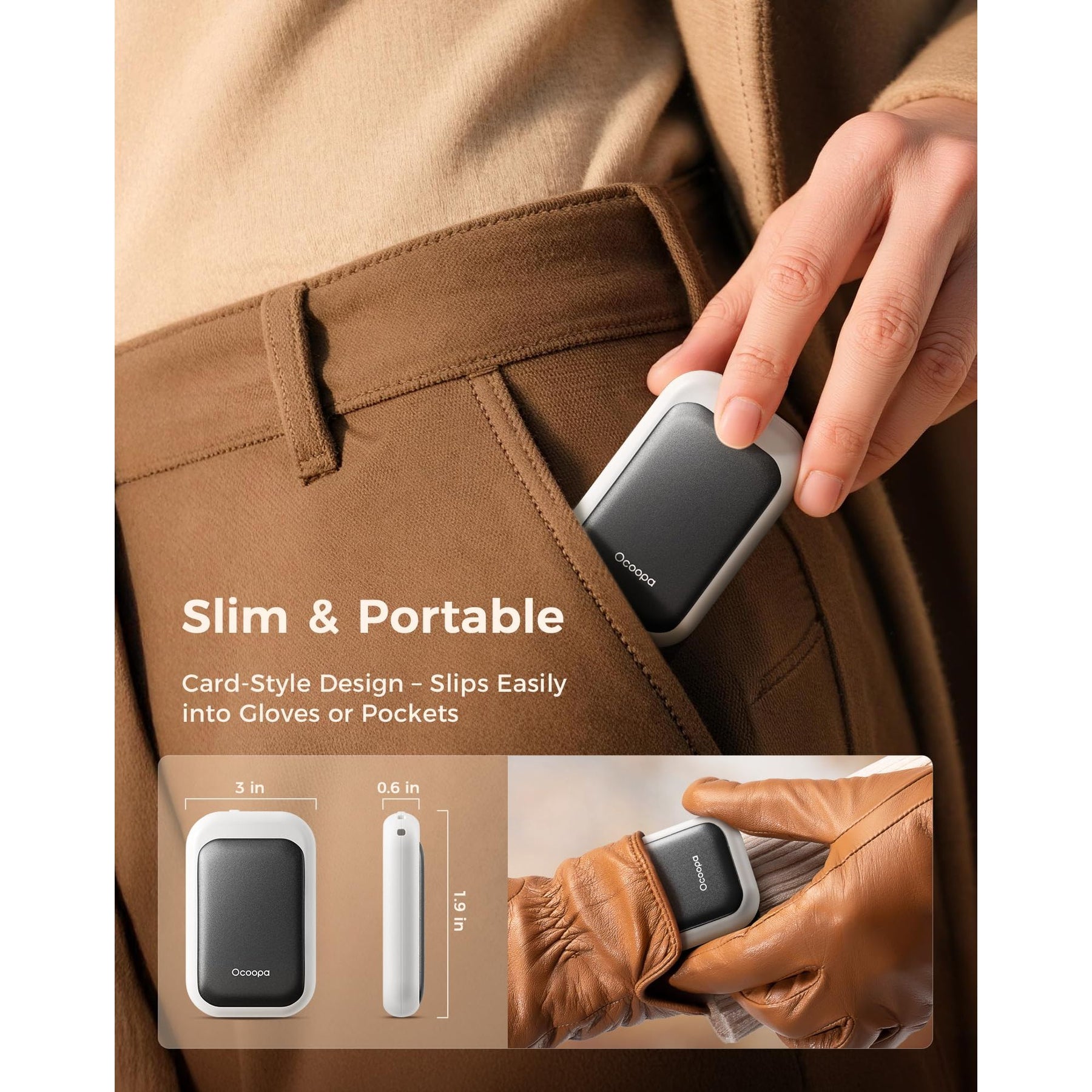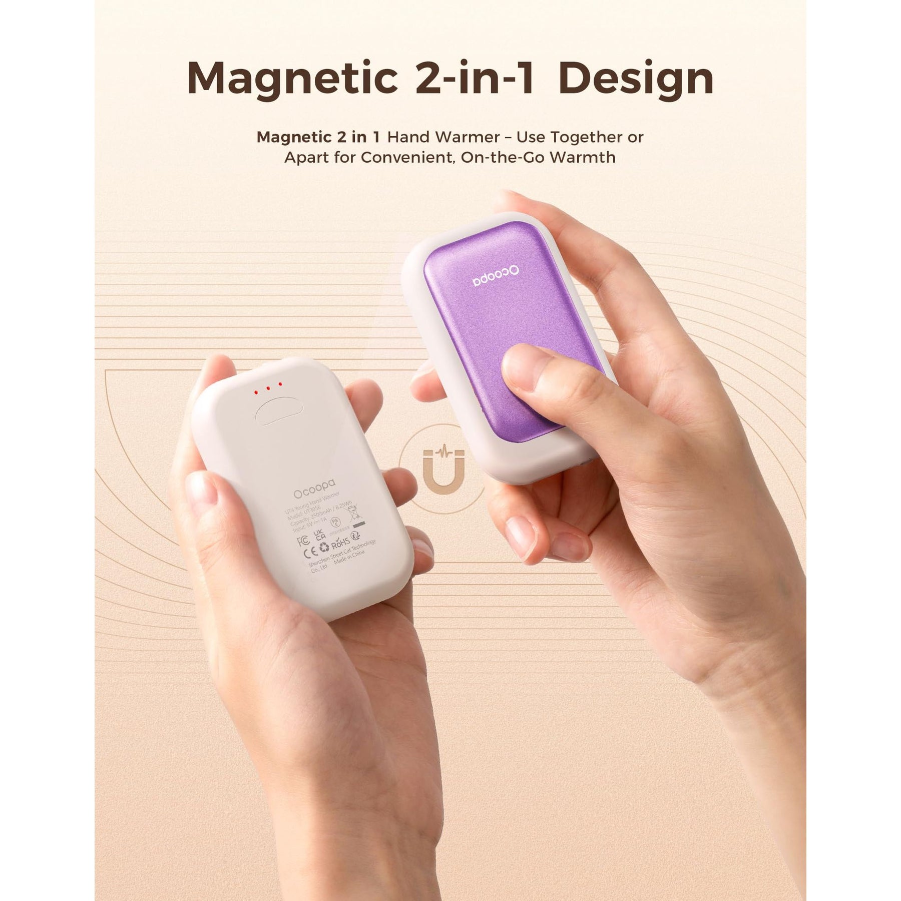 Ultra-Thin and Portable: The Ocoopa UT4 Young hand warmer is your perfect on-the-go companion, measuring just 0.6 inches thick and 30% lighter than similar models; It easily fits into gloves, pockets, and wallets, allowing you to enjoy warmth anytime, anywhere; Just snap it on and experience the convenience of the magnetic 2-in-1 design