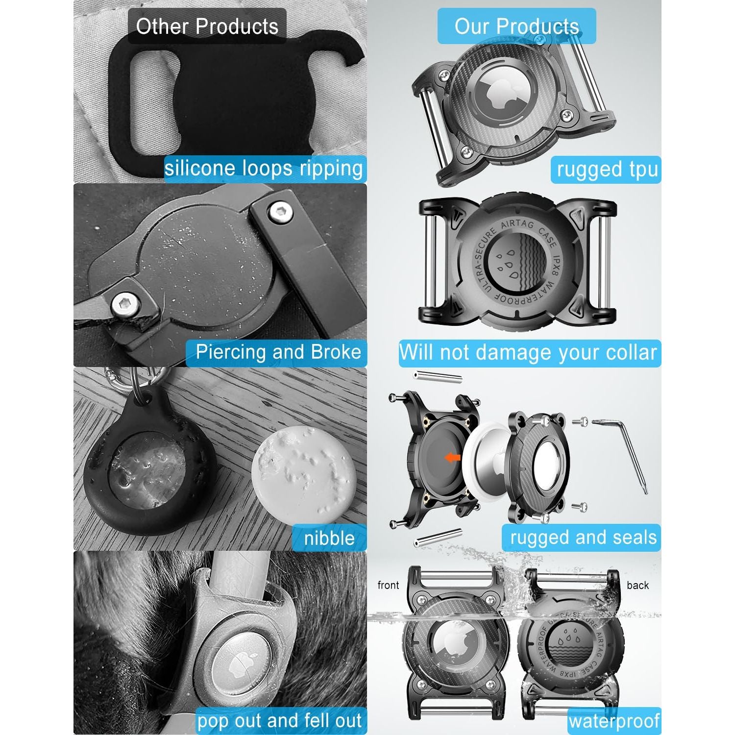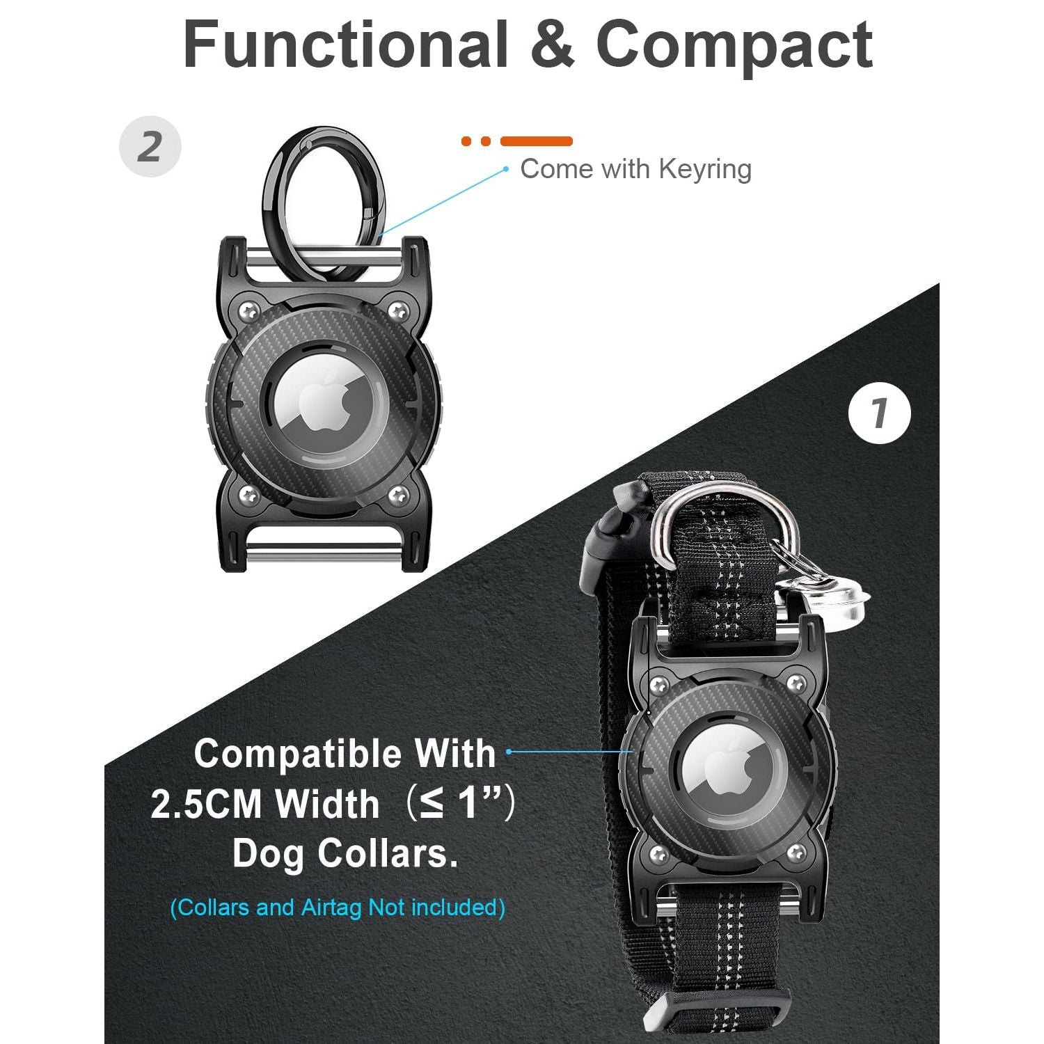Airtag Dog Compatibility: This airtag dog collar holder is specially designed for Apple Airtag. 1:1 original molded airtag case fit solidly, suitable for other air tag equipment.(Note: Airtag not included.)