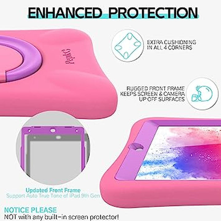 Introducing the Pepkoo Kids iPad Case in a vibrant Pink Purple color, designed specifically for active children who love to explore and learn through technology. This durable, shockproof case provides maximum protection for your iPad against drops, bumps, and everyday wear and tear.