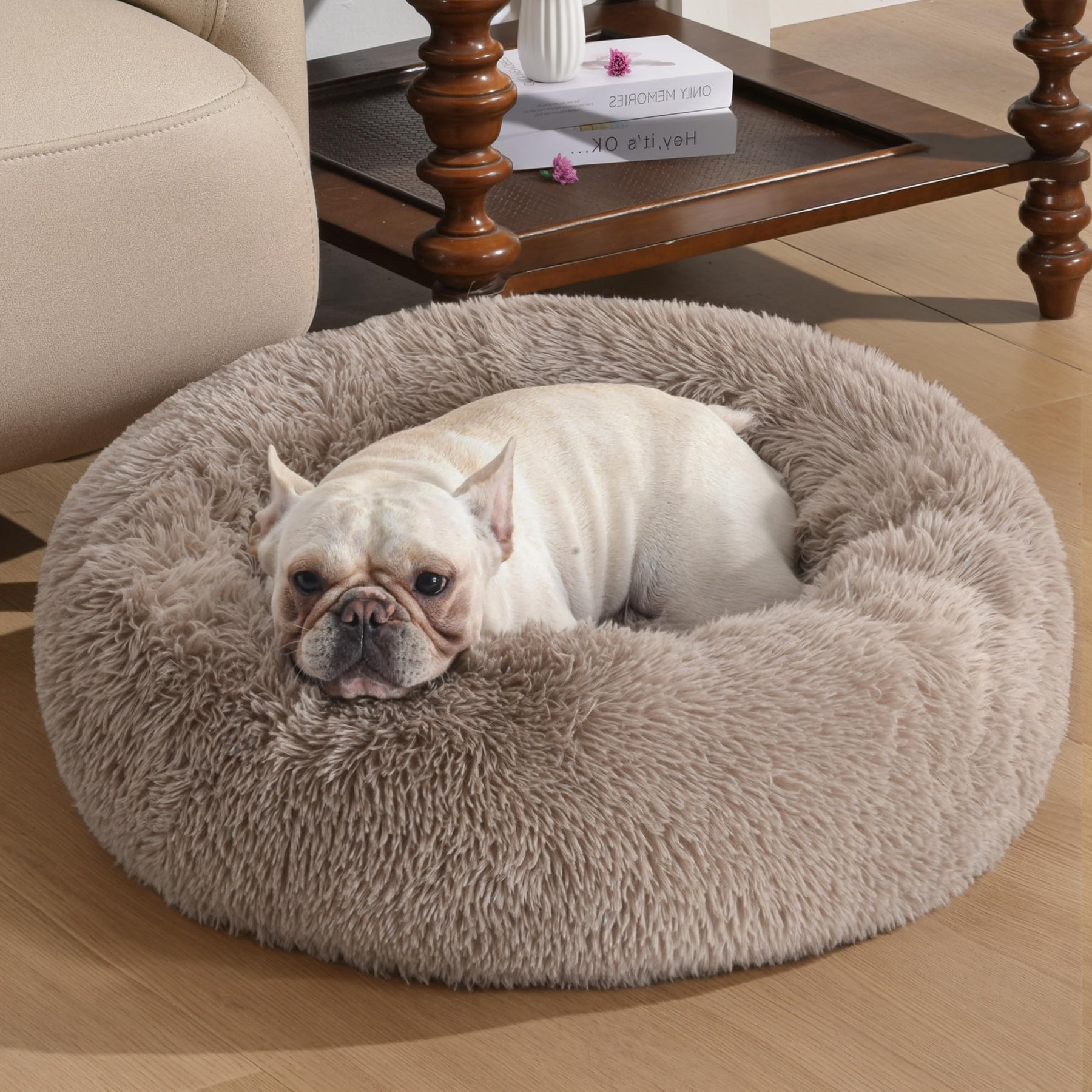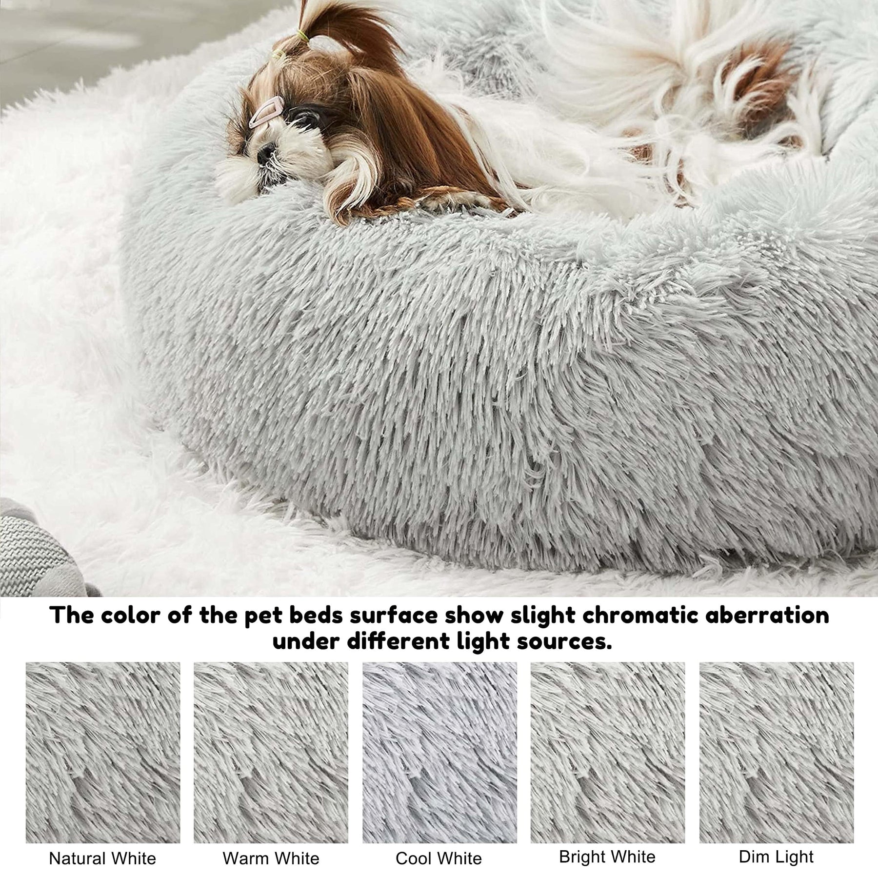 【SUITABLE SIZE】Three sizes are available for your choice. We recommend a 20-inch dog bed for small dogs (up to 11 pounds), a 24-inch dog round bed (up to 25 pounds), and a 27-inch dog calming bed (up to 35 pounds), it is recommended that you measure the size of your pet before buying.
