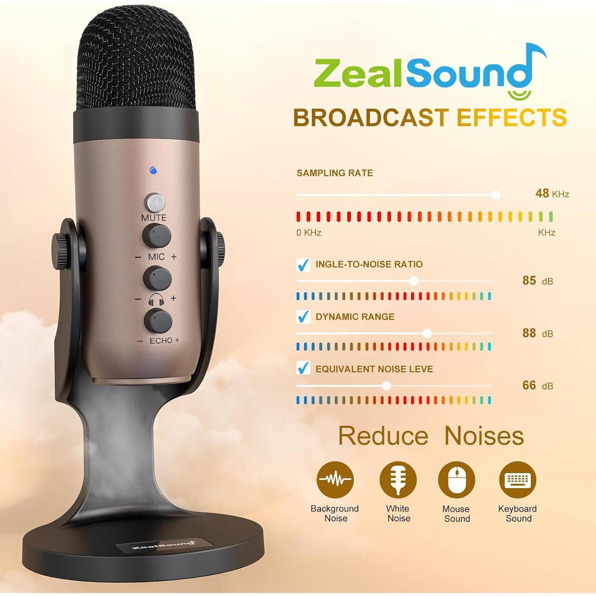 ZealSound Gold USB Gaming Mic with Headphone Jack - DOKUTRONIX
